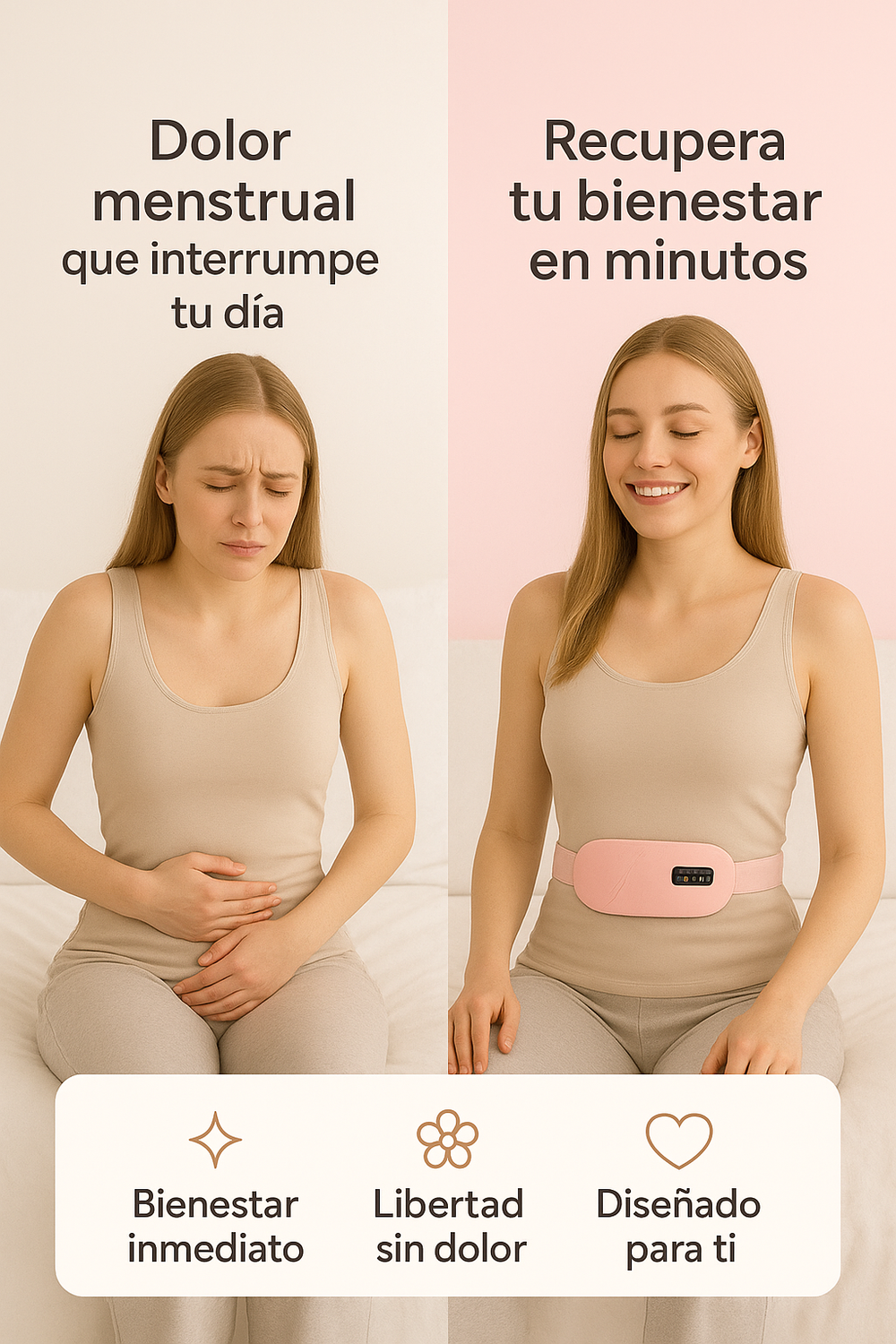 La terapia de calor se une a 4 modos de vibración. Elige el ritmo que calma los cólicos y relaja los músculos al instante.