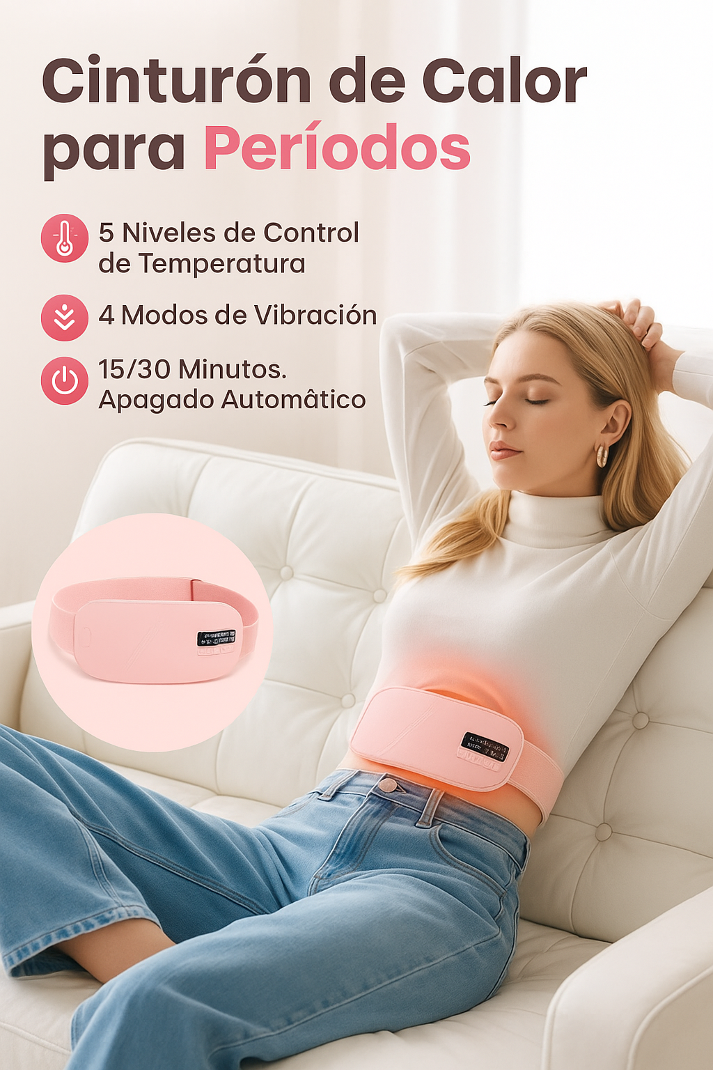 Control Total: Olvídate de los cólicos que te roban la paz. Con 5 niveles de calor terapéutico (45°C a 65°C), personalizas el alivio.